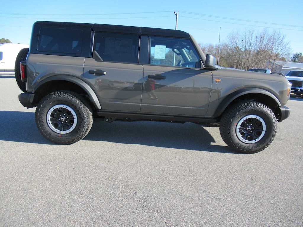 EQUIPMENT GROUP 334A LUX PACKAGE Rear Parking Sensors, Pro Power Onboard - 400W, Back side of center floor console, Dr & Pass Illuminated Sliding Visor Vanity Mirrors, Evasive Steering Assist, Heated Steering Wheel, Information on Demand Panel, Dual-Zone Electronic Automatic Temperature Control, air conditioning, Ford Co-Pilot360, Auto High-Beam Headlamps, Pre-Collision Assist w/Automatic Emergency Braking, pedestrian detection, forward collision warning and dynamic brake support, Blind Spot Information System (BLIS), Cross-Traffic Alert, Rear View Camera, backup assist grid lines, Lane-Keeping System, Lane-Keeping Alert, Lane-Keeping Aid and Driver Alert, Ambient Footwell Lighting, 2-Door Intelligent Access w/Lock/Unlock, Intelligent Access will also lock/unlock the swing gate, Dual Smart, SASQUATCH PACKAGE Wheels: 17 Matte Black Alloy, High Clearance Suspension, 4.7 Final Drive Ratio, electronic-locking front and rear axle, Front Stabilizer Disconnect, Tires: LT315/70R17 Rugged-Terrain, Position-Sensitive Bilstein Shock Absorbers, ENGINE: 2.7L ECOBOOST V6 GVWR: 6,180 lbs, SHADOW BLACK PAINTED HARD TOP Hard Top Sound Deadening Headliner, Rear-Window Defroster & Washer, TRANSMISSION: 10-SPEED AUTOMATIC trail control, trail turn assist and trail one-pedal driving, 4.46 Axle Ratio.